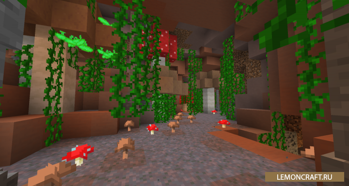 Мод на подземные биомы Subterranean Wilderness довольно большая модификация, которая значительно изменит внешний вид пещер сделав их более живыми и не такими мрачными. Теперь путешествуя по пещерам вы не захотите возвращаться в верхний мир, ведь он окажется прямо в пещерах.